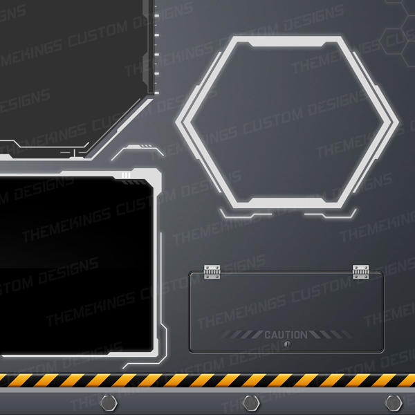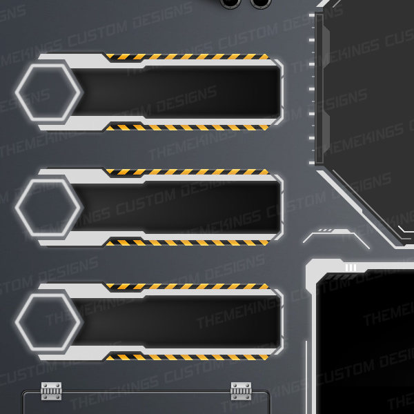 • Animated Effects: Periodic light sweeps along the frames, gentle flickers on the caution stripes, and a faint pulsing glow on all beveled edges create a living, breathing interface.