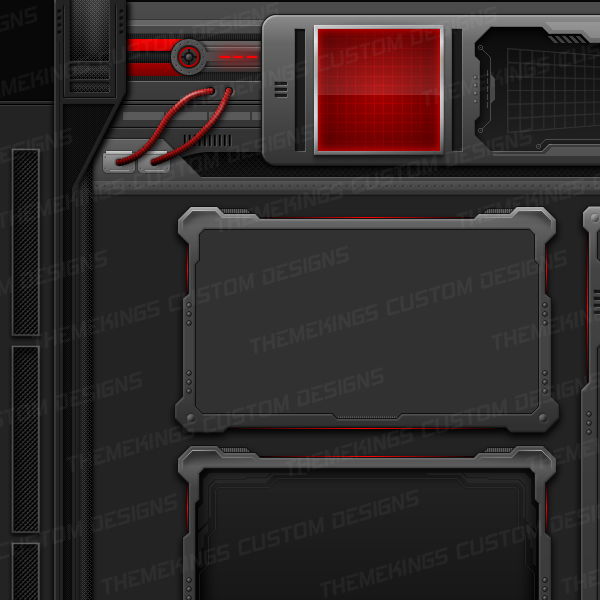 - Main Display Window: Large center-right panel designed for gameplay or full-screen content. Bordered by sleek tech-frame detailing with subtle lighting accents.